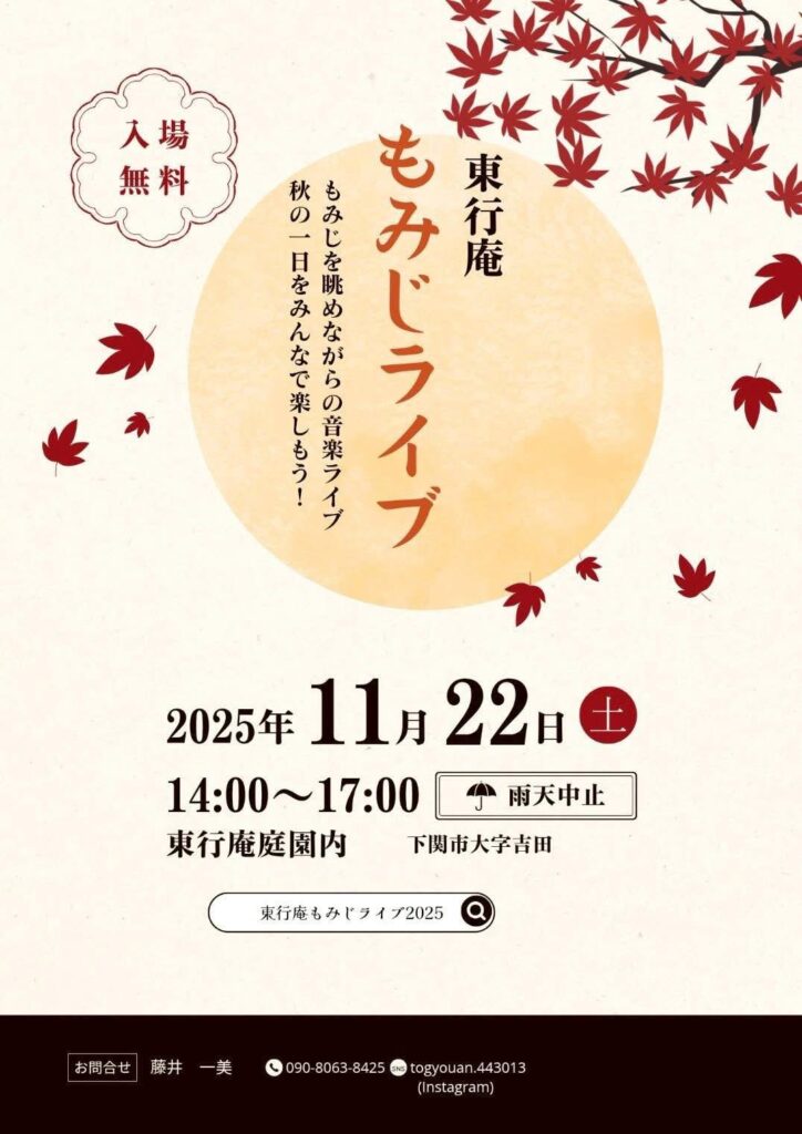 11月22日(土)東行庵もみじLIVEに長野定信、出演します