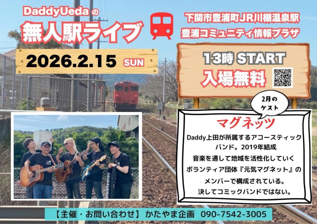 2月15日(日)DaddyUedaの無人駅ライブ、マグネッツで出演します!